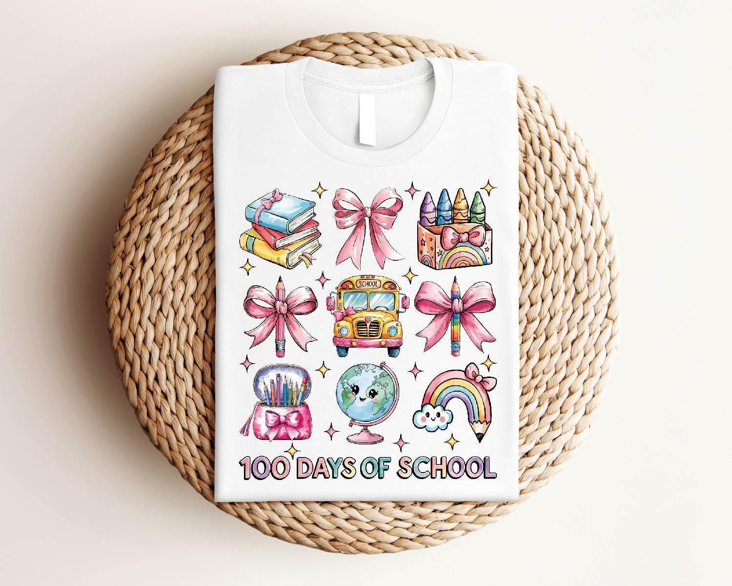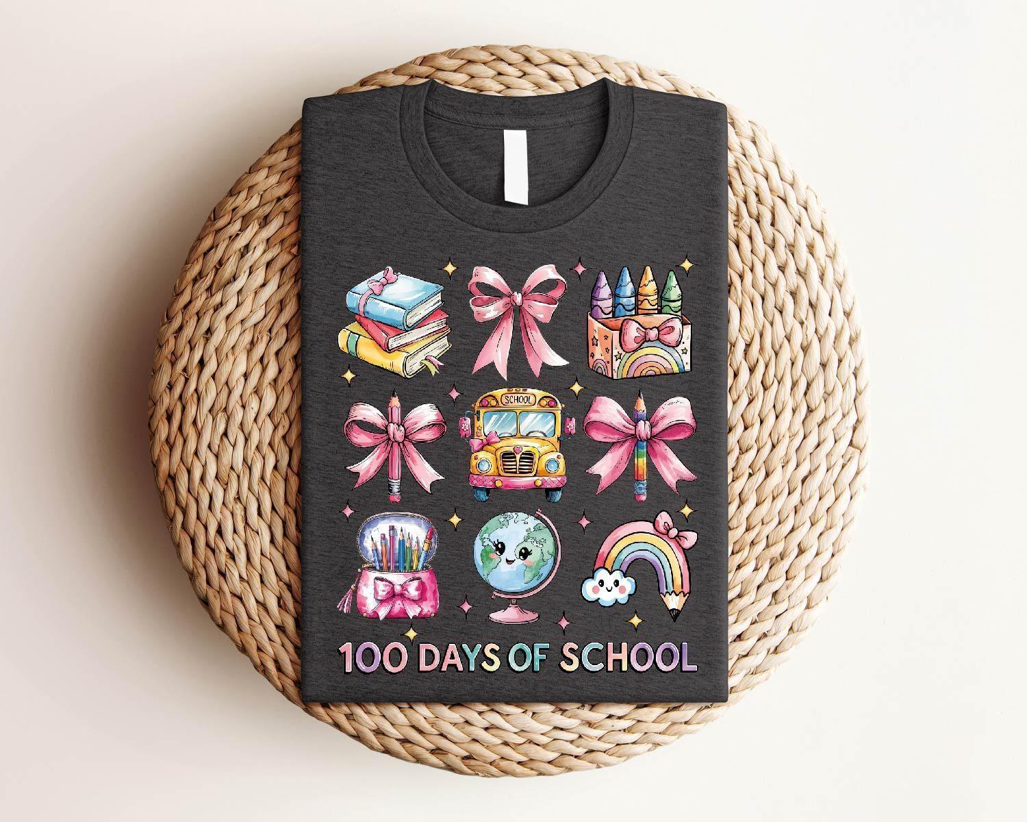 100 Days Of School T-Shirt, School Bus Shirt, Funny Back To School Shirt, School T-Shirt, Happy 100 Days School Shirt, Cute School Bow Shirt